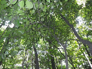 鎮守の森の様相を目指して、本物の照葉樹林の形成過程を模し、将来高木になる樹種(ブナ科、クスノキ科、ヤマモモ科など)、亜高木になる樹種(ツバキ科、ウコギ科、クスノキ科、モチノキ科など)、低木になる樹種(ツバキ科、ウコギ科、ミズキ科など)を混生蜜植した植樹方法