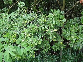 クスノキ科タブノキ、ツバキ科ヤブツバキ、スイカズラ科サンゴジュ、トベラ科トベラ、ウコギ科ヤツデ