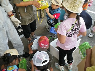 以上2ヶ所の緑地帯を探検した後、市役所駐車場へ戻り、参加した子ども達に「カブトムシ」(市民提供)をプレゼントして解散しました。