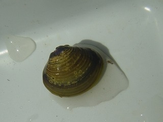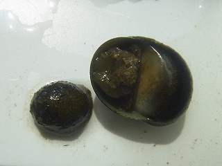 【左】テナガエビ 【中】アメリカザリガニ(外来) 【右】イシマキガイ