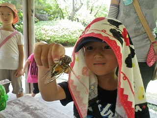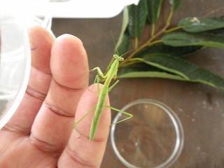 【左】タイワンウチワヤンマ 【中】カマキリ 【右】ショウリョウバッタ