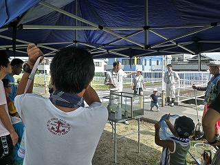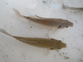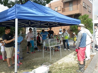 【左】ぽんつく開始 【右】自慢の一匹、分かち合い