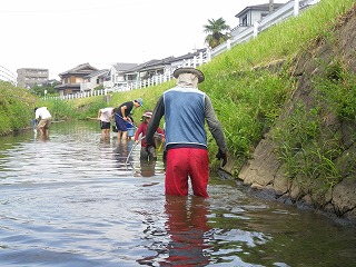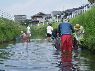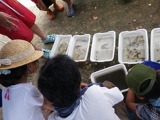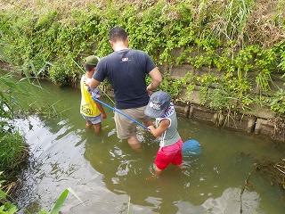 【左】深いから注意してね 【中】 【右】ドジョウが捕れた