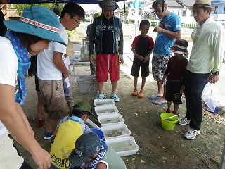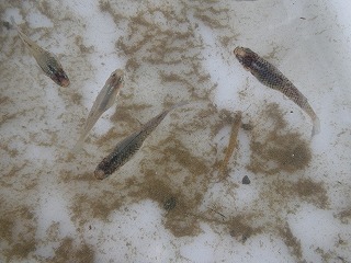 【左】何が捕れたかな 【中】最も多かったカダヤシ 【右】次に多かったのがフナ