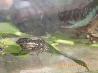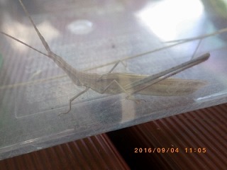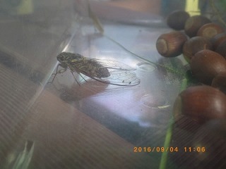 【左】ナミアゲハ 【中】ショウリョウバッタ 【右】ツクツクボウシとどんぐりが入っています。