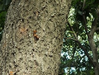 【左】草むらにバッタがいました 【右】ハチが樹液を吸っています。