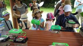 みんなが捕らえた虫さんを説明します。 この虫かごは誰のかなー