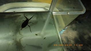 【内 容】 今年は酷暑であっが、今日は暑さも少し和らぎ、絶好の川の観察日和となりました。常連の参加者が昨年もウナギも取れたし、今回も期待してこの川の観察会に参加したと話されていた方も見えて、最後の夏休みでもあり、いつもながら参加者が多い観察会となりました。市の職員の方の挨拶と東海市を流れる川の現状と自然環境についての説明と、観察会をから田中さんから川の生き物の観察方法、捕え方、注意事項等の説明が有り、川の観察が始まりました。生き物との出会いと楽しみと期待をもって、川に入りました。子供たちはタモを片手にお父さん、お母さんと一緒になりタモに入った生き物を嬉しそうにバケツに入れたりし、川のあちらこちらで感激や感性の声をあげて楽しんでいました。今年も昨年より、大きなウナギとフナ、ドジョウ等と最近見られなくなった水生昆虫のタイコウチが捕らまえられ、ミニ水族館をかこみ、分かち合いを行いました。今年はアメリカザリガニが見つからず、ドジョウは増えているようでした。今年も参加された皆さんが楽しく、熱心にこの川の生き物を観察されて、有意義なものになりました。(記:南川)