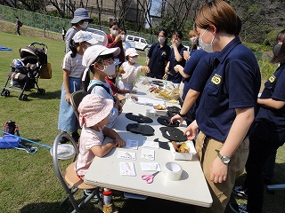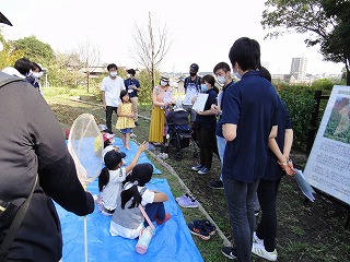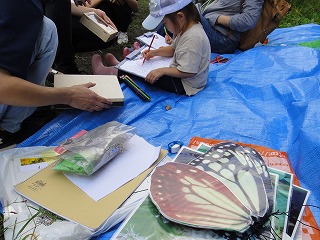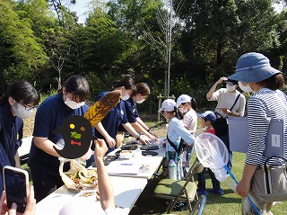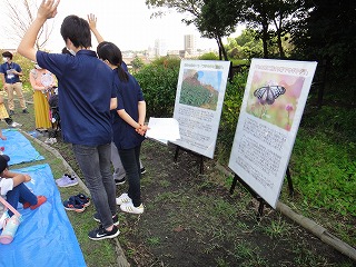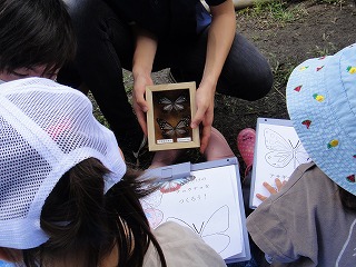 【左】アサギマダラ標本 雌雄比較 【中】閉会集合 【右】今日楽しかった事は何でしたか