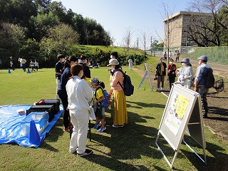 【左】アサギマダラのクイズ 【中】ハロウィン仮面づくり、紅葉で色づけ 【右】同左