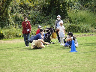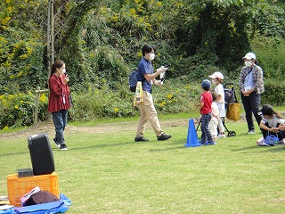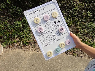 【左】クイズに答えてビンゴ ! 【中】ネイチャービンゴ盤 【右】ビンゴ盤で指定された落ち葉拾い