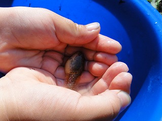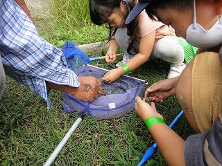 【左】スジエビ 【中】お玉杓子(ウシガエル) 【右】アマガエル