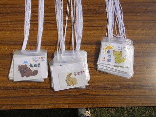 【左】「葉牡丹」植栽地域 【中】スタッフ証 【右】参加者グループ分け証