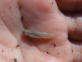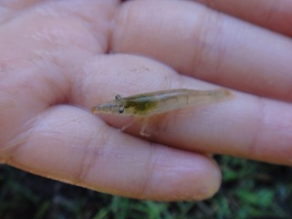 【左】カワニナ 【中】カダヤシ 【右】アメリカザリガニ