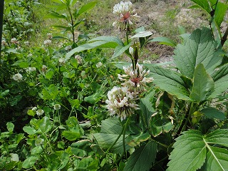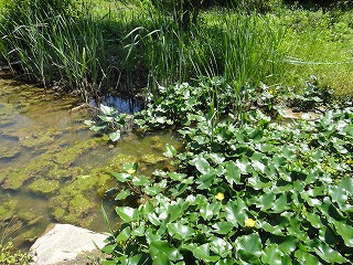 カキツバタ(開花)、アサザ(開花)、イグサ(開花)、ヒメガマ、シロツメクサ(開花)、ヒメジョオンン(開花)、ノゲシ、アメリカフウロ