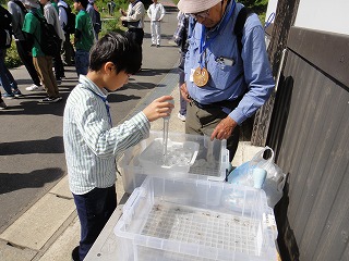 【左】オープニングセレモニー   【中】   【右】外来種アメリカサセリガニ捕獲