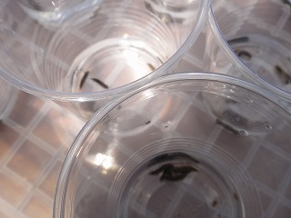 【左】ヘイケボタル幼虫   【中】   【右】幼虫放流