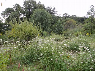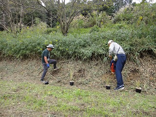 【左】芝生広場斜面 ススキ植栽 【中】中池 ショウブ 【右】秋の七草 植栽