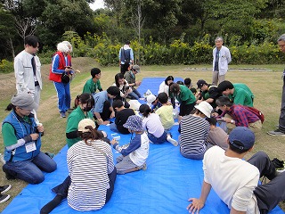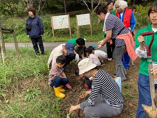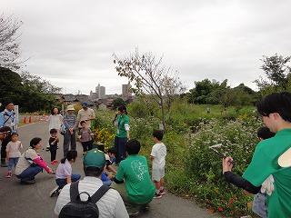 【左】芝生広場斜面 チガヤ植栽 【中】アサギマダラのお話 【右】ワークショップ