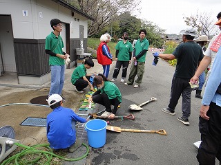【左】同上 【中】エンディング挨拶 【右】植栽道具 水洗い