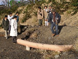 強風のため船が欠航し一日遅れで三宅島に着くことができました。三宅島ガイドをNACS−Jを通じお願いしましたたら現地で緑化事業に取り組んでいる成田さんを紹介していただきました。そのお陰で随分助かりました。三宅島の人たちが帰島して未だ一年経過していません。また、2000年の噴火の傷跡が生々しく残り、二酸化硫黄が噴出し各所に高濃度地区や危険区域が設けられています。そんな状態の中、島の様子に明るい成田さんに案内していただき助かりました。