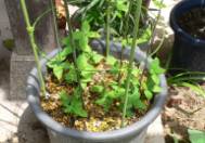 2011年早春、10号鉢に3本を硬質鹿沼土主体の用土に植えた。1本は冬の間に消えていた。無事発芽、夏の暑さには弱そうなので、半日陰で夏を越した。