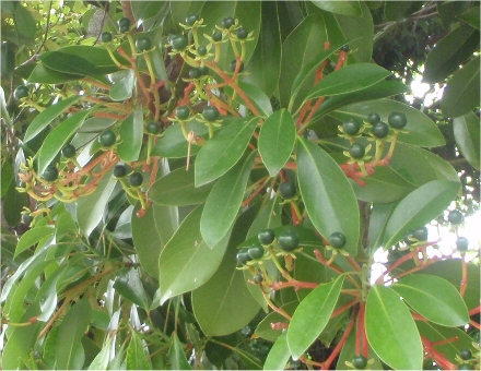発見の経過は、タブに青い実が一杯付いていて、「こんなに付いているのを見たのは初めてだ…」といいながら実の写真を何枚も撮っている内に気づいたという次第です。したがって、もし実が付いていなかったらいつものように素通りしていたということです。これからは実が付いていなくてもちょっとまじめに探してみようというお話です。