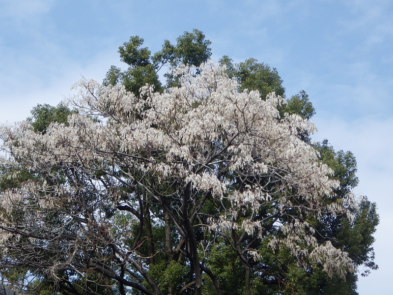 【上の3枚】愛知県図書館前の“白い花?”が満開の木。すべて同一の木