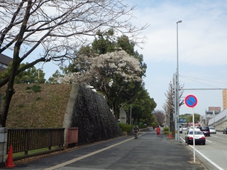【上の2枚】お堀にも同じ木が1本ある(いずれも写真中央…同一の木)。これも満開?でした