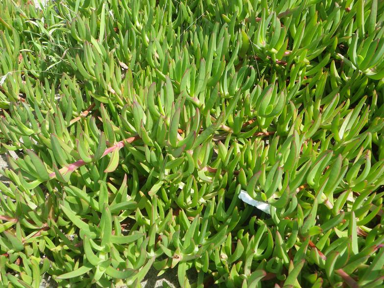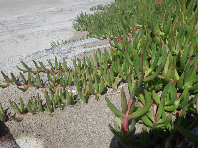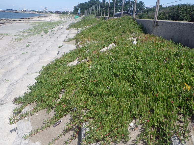 その折、だいぶ前どこかの住宅地で見たことがあったような植物がこの海岸に繁茂していたので「う〜ん、これも侵略的植物か…」と思いながら、一応、写真に撮った。