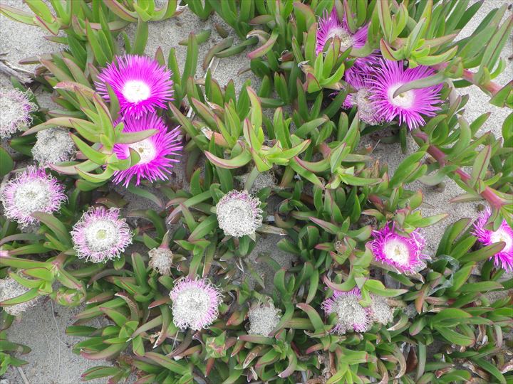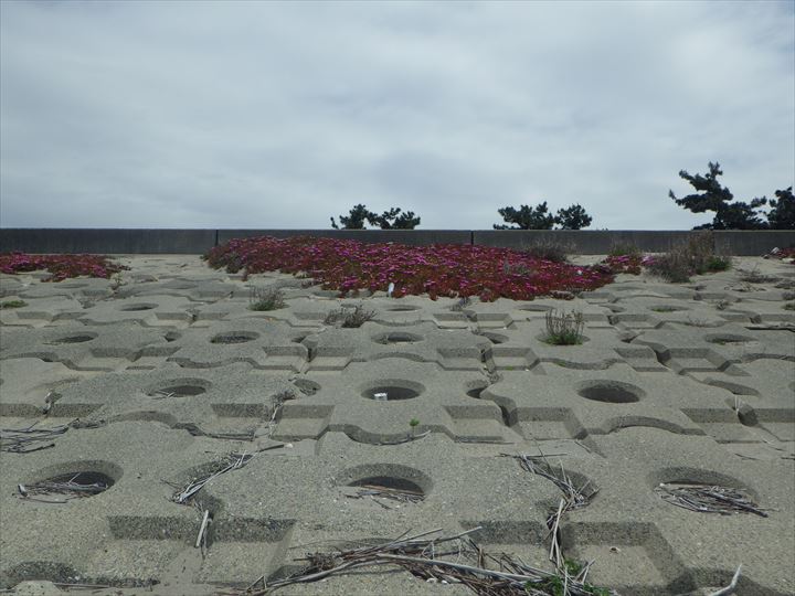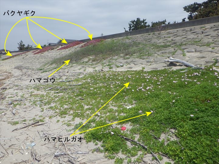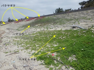 上の3枚の写真から→バクヤギクは、ハマヒルガオみたいに、堤防の下の砂浜に降りて来れないのではないか?…と思うのですが、いかがでしょうか…。