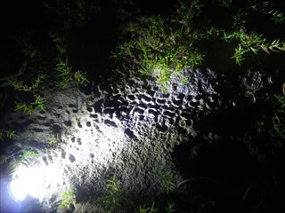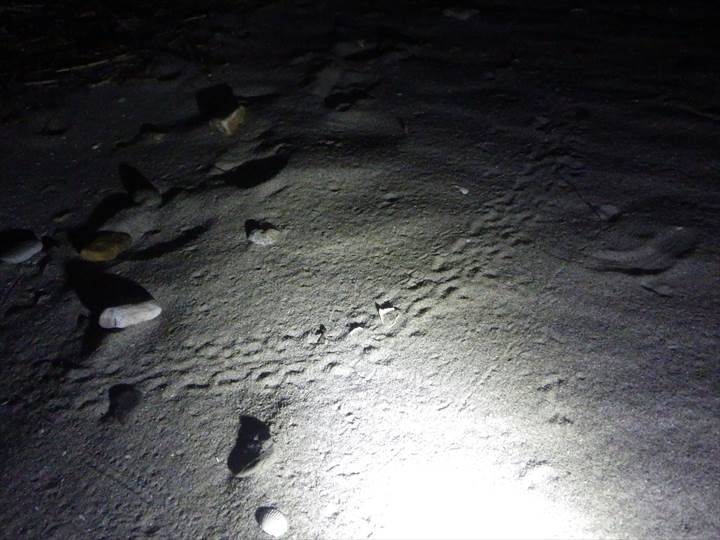 今晩7時すぎからちょっと見てみようかと思っています。穴の周りは放射状に子ガメが出たような足跡が無いように思います。