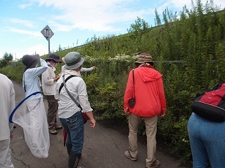 【左】2020.9.6 武豊「別曽池」観察会。中央に見える細長く白い部分がセンニンソウの花