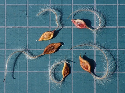 【左】[上図]の拡大図 【右】11月上旬ならばこの冠毛は、もっと真っ白だったと推測