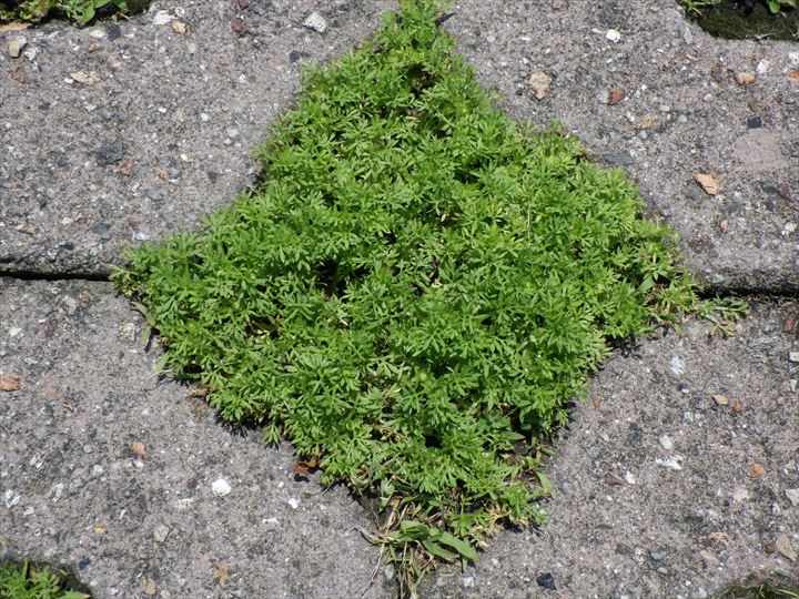 【左・右】駐車場の石畳の一部。[右]のようにマスが全部メリケントキンソウというモノがままある